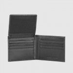 Black solid two-fold wallet 1 main compartment has a non-detachable flap 12 card holders inside and 1 card holder externally 1 ID card holder, 2 slip pockets.