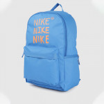 Blue brand logo backpack Non-padded haul loop 1 main compartment with zip closure, has non-padded laptop compartment 1 external zip pocket, 1 side stash pockets & 1 side zip pocket Padded mesh back.